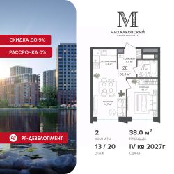 Продаётся 2-к квартира 38,0 кв.м. в ЖК "Михалковский" на 13-м этаже 20 этажного дома.