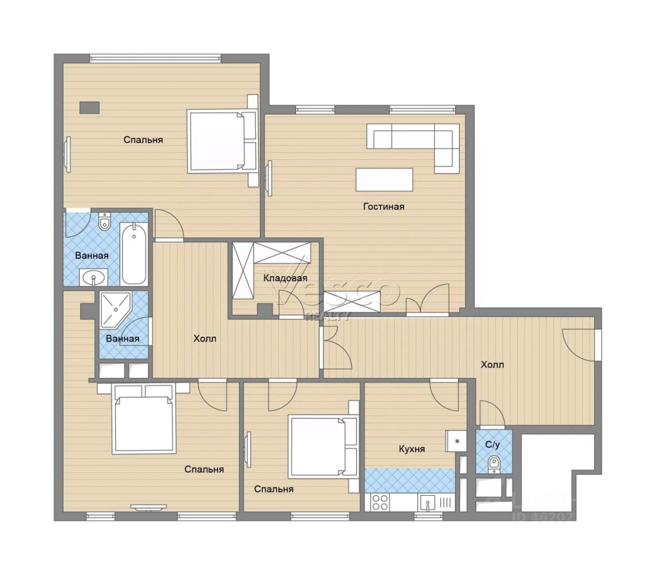Лот 63735. ЖК "Пирамида" - Представлена к продаже двусторонняя квартира без отделки площадью 182 кв. м на 5 этаже оригинального жилого комплекса Пирамида.