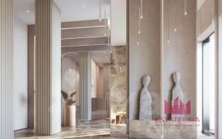 Квартира расположена на 63 этаже 68-этажного корпуса в жилом комплексе комфорт-класса.