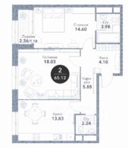 Квартира без отделки. 2 изолированные комнаты: спальня, гостинная. Кухня, раздельный и совмещенный санузел.