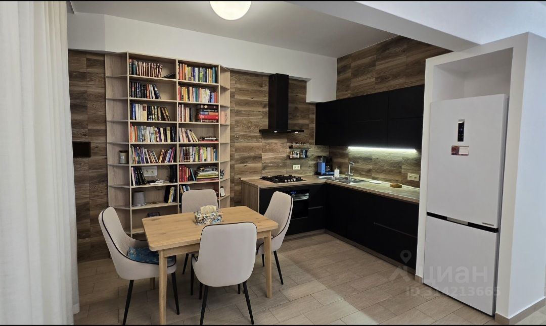 Обустроенна кухонным гарнитуром и мебелью, оснащенна современной кухонной техникой и сантехникой.