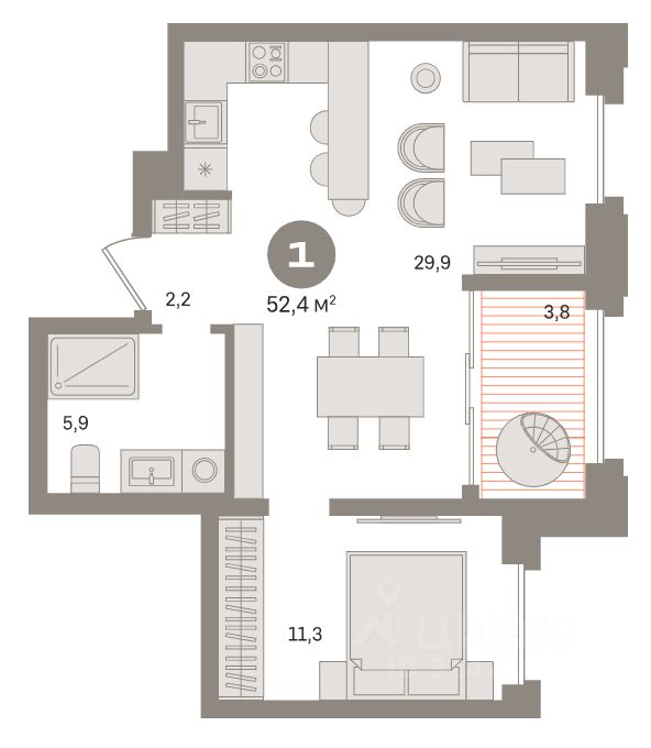 Планировка удобная - в просторной гостиной 2 окна, что позволяет ее трансформировать в небольшую 2к.квартиру при необходимости.