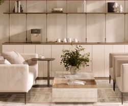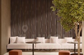 В этом проекте лобби - светлые, без ступеней, высокие и прозрачные входные группы, домофон в тёплом тамбуре, понятная навигация в холле и на этажах. Комфортные глазу тона, уютная и удобная мебель, тёплый свет, скульптуры, много живых растений.