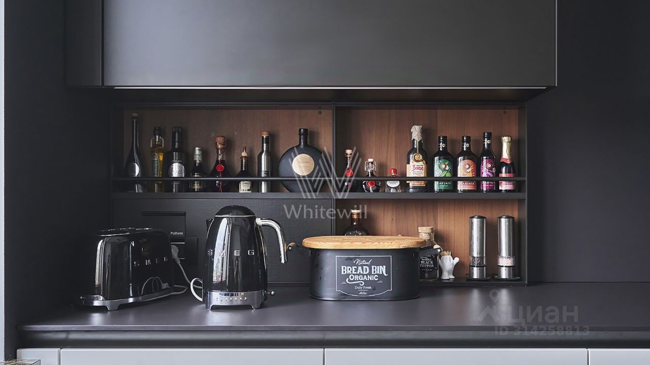 Встроенная техника на кухне и постирочной Mille, системы хранения производства Германия, мебель под заказ провозилась из Европы.