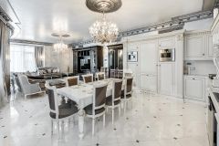 Выполнена отделка в классическом стиле, установлена итальянская мебель Moletta, Bruno Zampa, Alivar Museum, Marie's corner и другие. Бытовая техника Gaggenau, люстры Mechini.