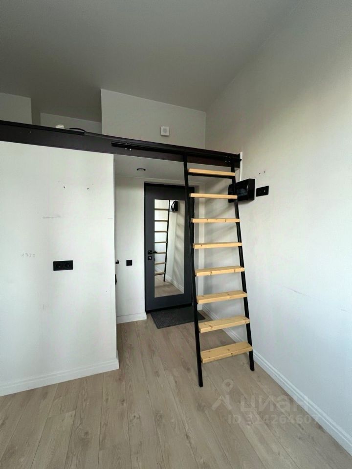 Светлые двух уровневые апартаменты общей площадью около 17 квадратных метров на первом этаже. Площадь первого уровня 12,4 кв.м, второго - около 4 кв.м. Окна выходят на запад во двор.