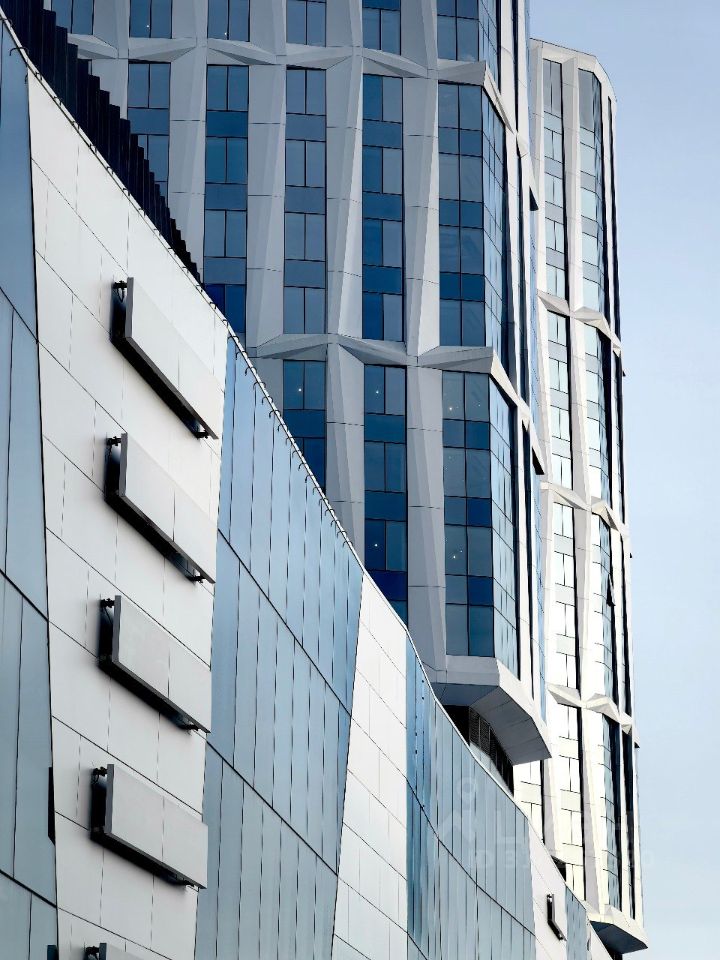 Авторы проекта - архитектурное бюро "SPEECH". Это единая композиция из двух 21-этажных башен высотой около 100 м, четырехэтажного торгового центра и четырехуровневого подземного паркинга.
