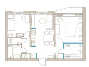 Двухкомнатная светлая квартира, с небольшой перепланировкой без затрагивания несущих стен.