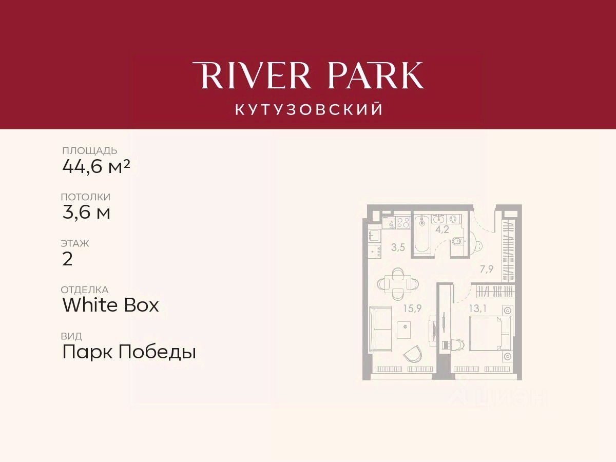 Продается 1-к квартира площадью 44.6 кв.м. на 2-м этаже в жилом комплексе премиум-класса River Park Кутузовский в Башне Diamond Tower