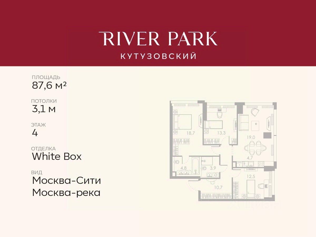 Продается 3-к квартира площадью 87.6 кв.м. на 4-м этаже в жилом комплексе премиум-класса River Park Кутузовский в Башне Diamond Tower