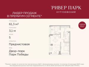 Продается 2-к квартира площадью 61.3 кв.м. на 5-м этаже в жилом комплексе премиум-класса Ривер Парк Кутузовский в Башне Бриллиант