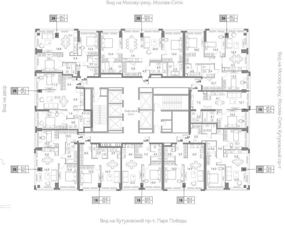 Продается 2-к квартира площадью 61.3 кв.м. на 5-м этаже в жилом комплексе премиум-класса River Park Кутузовский в Башне Diamond Tower