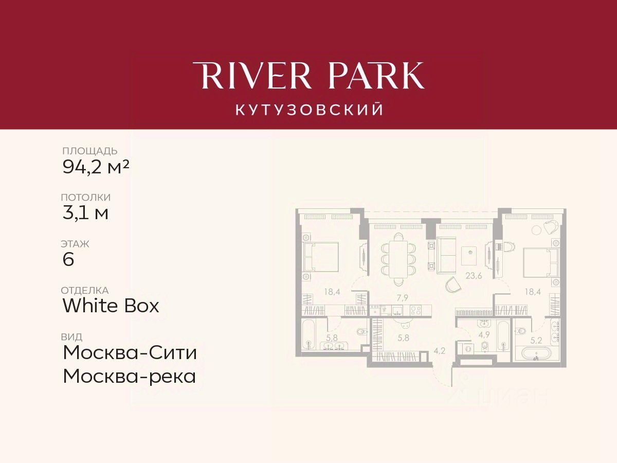 Продается 2-к квартира площадью 94.2 кв.м. на 6-м этаже в жилом комплексе премиум-класса River Park Кутузовский в Башне Diamond Tower