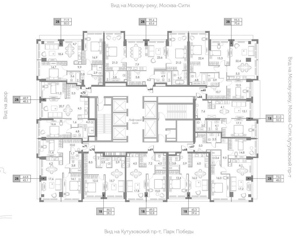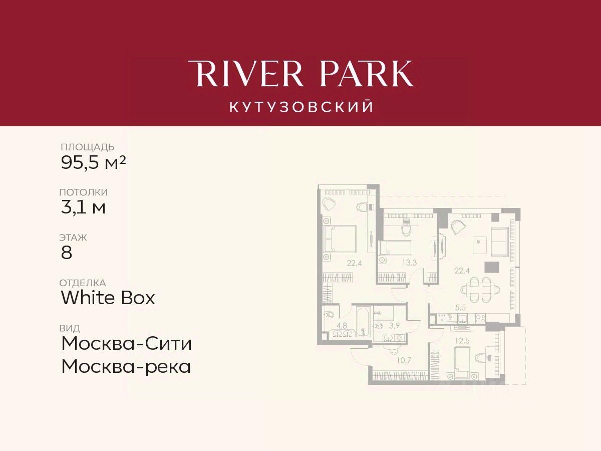 Продается 3-к квартира площадью 95.5 кв.м. на 8-м этаже в жилом комплексе премиум-класса River Park Кутузовский в Башне Diamond Tower