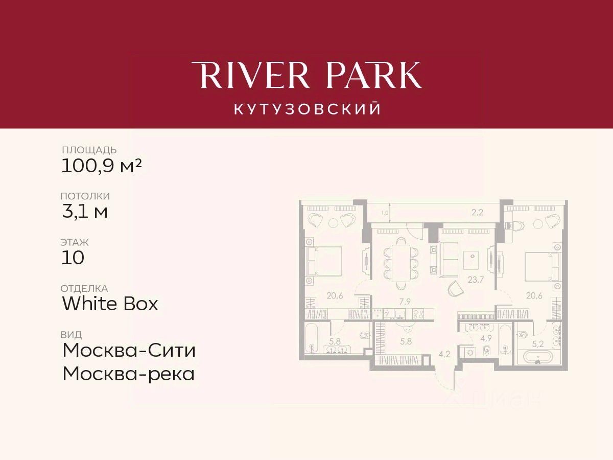Продается 2-к квартира площадью 100.9 кв.м. на 10-м этаже в жилом комплексе премиум-класса River Park Кутузовский в Башне Diamond Tower