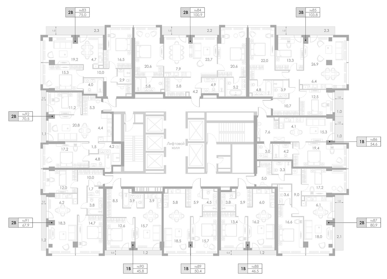 Архитектура от именитого бюро ADM отличается уникальной пластикой фасадов - башни словно парят в воздухе, играя гранями как драгоценные камни. Жилой комплекс состоит из 5-ти небоскребов с home park на закрытой территории и внешней торговой галереей с открытым доступом.