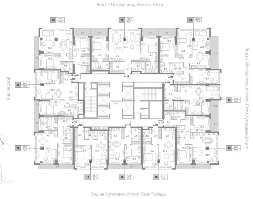 Продается 3-к квартира площадью 108.3 кв.м. на 13-м этаже в жилом комплексе премиум-класса River Park Кутузовский в Башне Diamond Tower