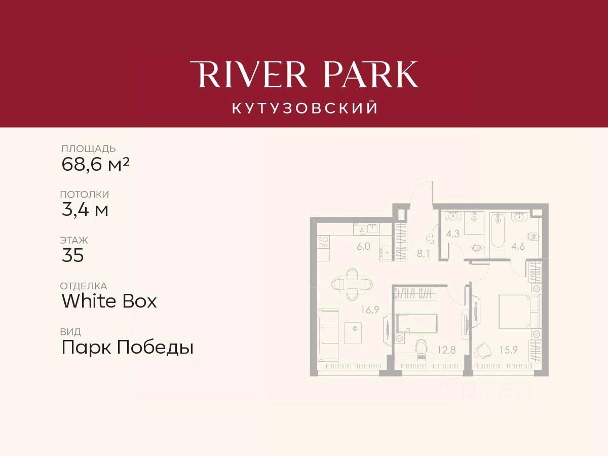 Продается 2-к квартира площадью 68.6 кв.м. на 35-м этаже в жилом комплексе премиум-класса River Park Кутузовский в Башне Diamond Tower