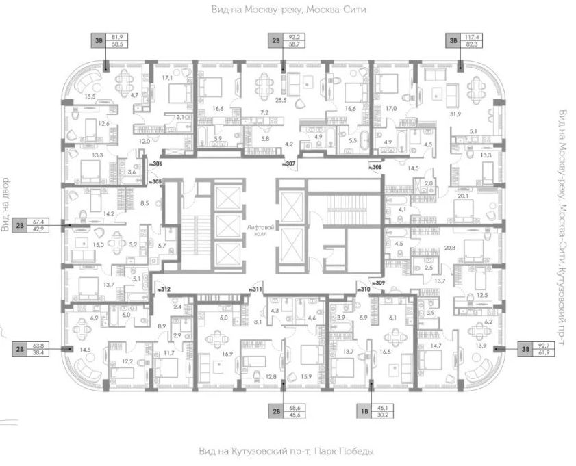 Архитектура от именитого бюро ADM отличается уникальной пластикой фасадов - башни словно парят в воздухе, играя гранями как драгоценные камни. Жилой комплекс состоит из 5-ти небоскребов с home park на закрытой территории и внешней торговой галереей с открытым доступом.