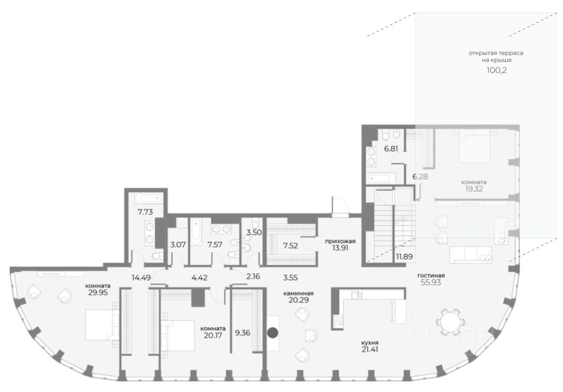 - 29 панорамных окна на три стороны, потолки 4 метра, просторная кухня-гостиная, холл с гардеробной;