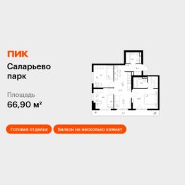 Продаётся 3-комн. квартира площадью 66,9 кв.м на 17 этаже 18 этажного дома (Корпус 74.1, Секция 1) проекта ПИК Саларьево парк. Светлый просторный подъезд на уровне земли, функциональная планировка, большие окна, c отделкой.