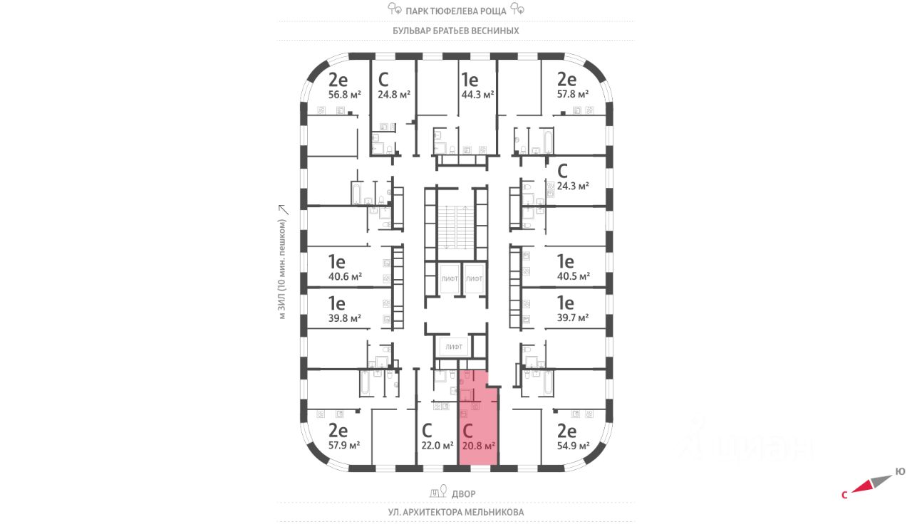 Продаётся квартира-студия в доме 18 (ЗИЛАРТ ГРАНД) ЖК "ЗИЛАРТ" общей площадью 20.8 кв. метров на 28 этаже.