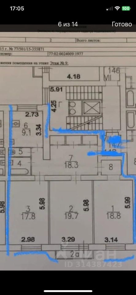 Продаётся трёхкомнатная квартира в Москве, на улице Сущёвский Вал, 13/1. Общая площадь квартиры — 91 кв. м, жилая — 56.3 кв. м, кухня — 9.3 кв. м. Квартира находится на 9 этаже 9-этажного монолитного дома, построенного в 1959 году. Высота потолков составляет 3 метра, что создаёт ощущение простора. Из окон открывается вид во двор, обеспечивая тишину и покой.