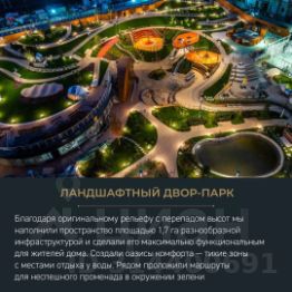 На площади почти 2 гектара созданы пешеходный бульвар и живописный ландшафтный двор-парк с террасным склоном, в котором растут луговые травы, кустарники и множество взрослых деревьев. Необычный рельеф и современное благоустройство ландшафтного двор-парка продолжают тенденции европейского паркового искусства.
