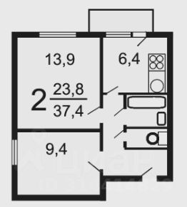 Продается уютная двухкомнатная квартира общей площадью 37,7 м, 9/12 этаж;