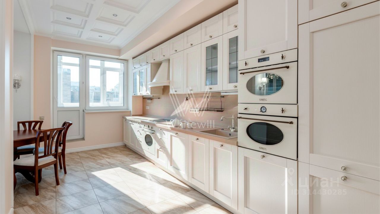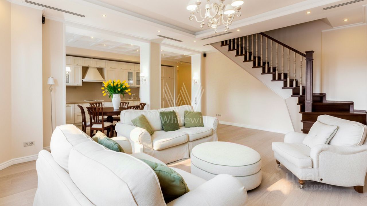 Двухуровневая квартира площадью 176 м² в клубном доме "Малый Николопесковский, 4" на шестом этаже. Выполнена авторская отделка в стиле современной классики с использованием премиальных материалов. Многоуровневые потолки украшает карниз и дизайнерские люстры, стены — декоративные молдинги и графика. Квартира укомплектована мебелью и бытовой техникой Smeg. Высота потолков 3,2 метра. Установлена система центрального кондиционирования.