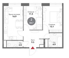 Квартира с 2 спальнями и кухней-гостиной в жилом комплексе бизнес-класса Voxhall. Застройщик ГК Эталон. 10 этаж 13-этажной секции, линейка, все окна смотрят на юг - во двор. Общая площадь 58,9 квм, большая кухня-гостиная 16,9 квм. Без отделки - shell&core. Комплекс состоит из 4х разноэтажных корпусов, максимальной высотой 25 этажей, закрытая обособленная территория 2,7 Га, с подземным паркингом, на первых этажах коммерческая инфраструктура, полупанорамные окна - 40 см от пола. Высота потолков в жилом корпусе 3,4 м. Ввод в эксплуатацию декабрь 2025 г. Ключи по ДДУ до 31.03.2026 года.