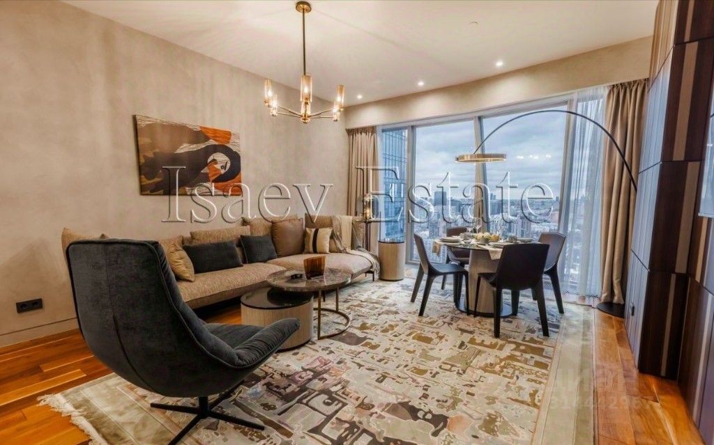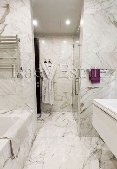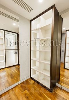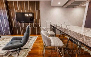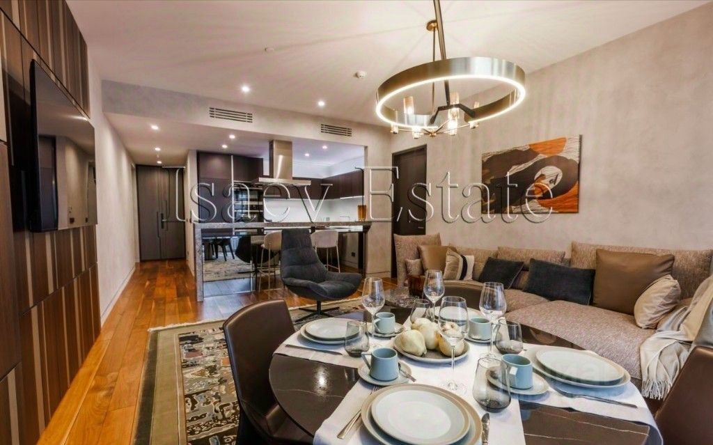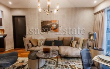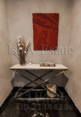 Двухкомнатные апартаменты, с дизайнерской отделкой. Полностью меблирован, укомплектован техникой мировых производителей. Современные инженерные системы: приточно-вытяжная вентиляция; очистка воздуха и воды; кондиционирование. По плану: входная группа со шкафом для верхней одежды, с консолью из натурального камня; гостиная-кухня с отдельной столовой зоной; спальня со своей гардеробной и санузлом; гостевой санузел при входе; хозблок (стирка, глажка, хранение хоз средств).