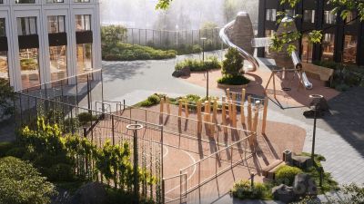 Во дворе комплекса "Мангазея в Богородском" будут места как для спокойного отдыха и работы, так и для игр и спорта. Здесь организованы игровые площадки для детей всех возврастов, места для стритбола и тенниса, а также зона с природным ландшафтом и коворкинг с экологичной деревянной мебелью.
