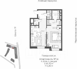 В продаже от собственника YUNIKA апартамент свободной планировки общей площадью 69,7 кв.м. с предчистовой отделкой.