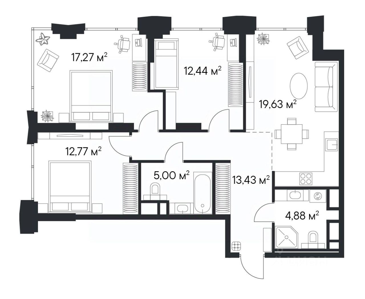 Продаётся просторная 3-комнатная квартира площадью 85,42 м², расположенная на 27 этаже корпуса 1.2 — идеальный выбор для тех, кто ценит эстетику высоты, панорамы города и современный премиум-класс.