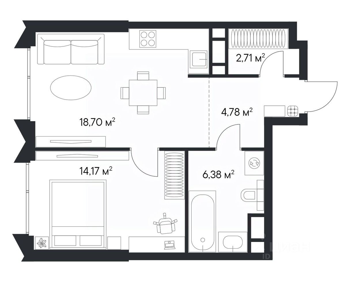 Продаётся просторная 1-комнатная квартира площадью 46,77 м², расположенная на 27 этаже корпуса 1.1 — идеальный выбор для тех, кто ценит эстетику высоты, панорамы города и современный премиум-класс.