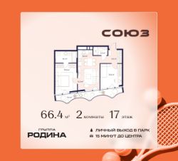 Продаётся 2-комнатная квартира площадью 66.4 м² на 17 этаже в Жилом Комплексе "Союз".
