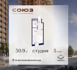 Продаётся квартира-студия площадью 30.9 м² на 5 этаже в Жилом Комплексе "Союз".