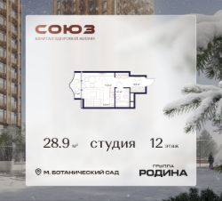 Продаётся квартира-студия площадью 28.9 м² на 12 этаже в Жилом Комплексе "Союз".