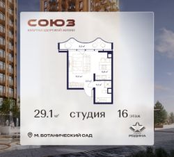 Продаётся квартира-студия площадью 29.1 м² на 16 этаже в Жилом Комплексе "Союз".