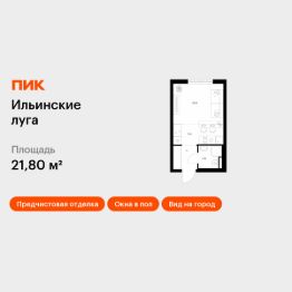 Продаётся квартира-студия площадью 21,8 кв.м на 9 этаже 9 этажного дома (Корпус 3.1, Секция 4) проекта ПИК Ильинские луга. Светлый просторный подъезд на уровне земли, функциональная планировка, большие окна, предчистовая отделка.