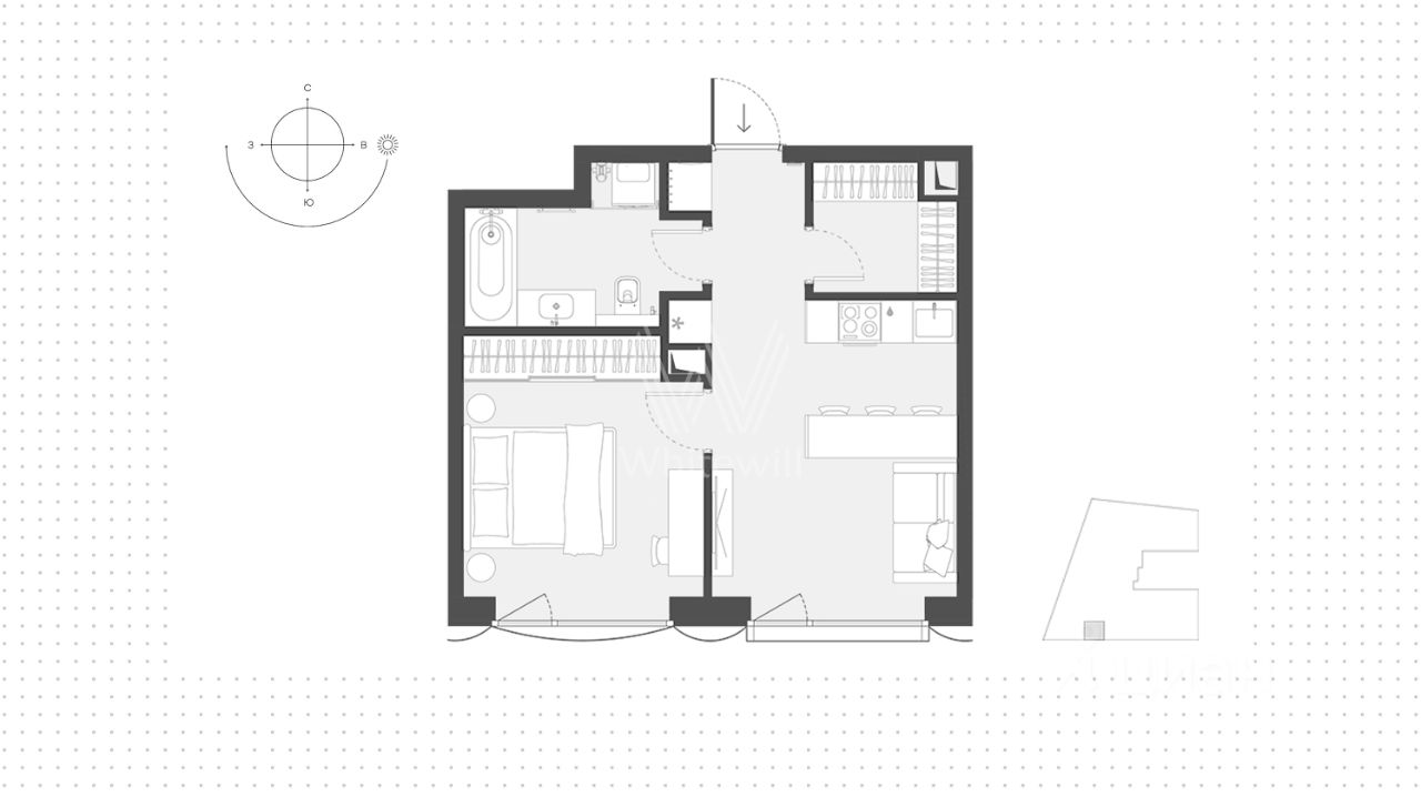 Апартаменты с одной спальней площадью 41 м² в комплексе премиум-класса Logos. Апартаменты с предчистовой отделкой white box расположены на третьем этаже. Планировка: кухня-гостиная, спальня, ванная комната, гардеробная, прихожая. Благодаря панорамным окнам пространство наполнено светом, открываются виды во двор.