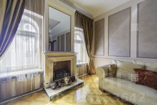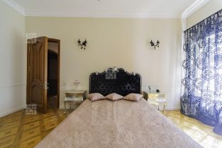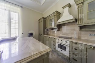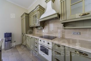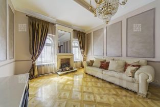 В квартире выполнен ремонт в стиле классицизм. Установлена новая кухня с мраморным островом. Красивые арочные двери из массива дуба, шикарные окна, итальянская дорогая мебель, дизайнерские люстры, декоративный камин, облицованный мрамором.