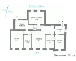 Квартира ориентирована на три стороны света. 11 окон! Высота потолков 3.6 метра.