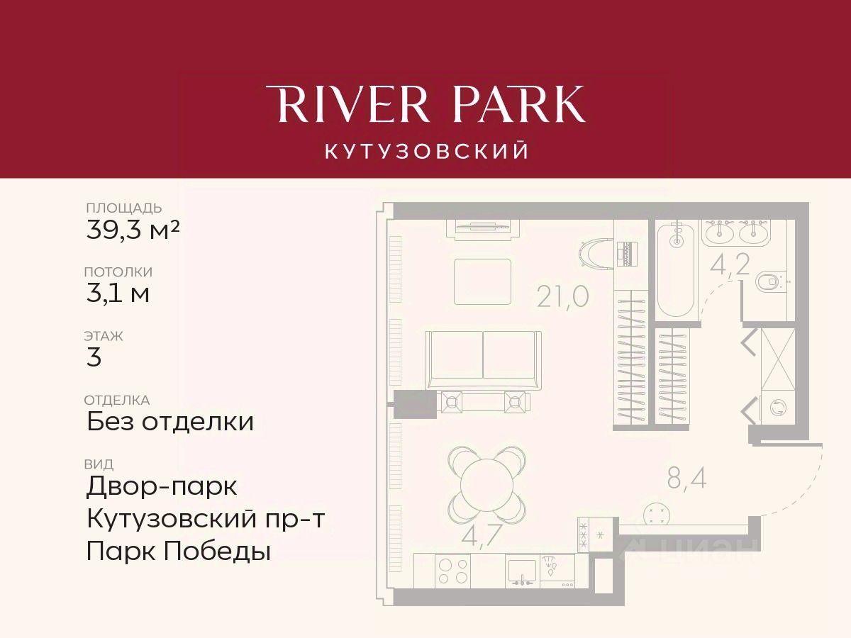 Продается студия площадью 39.3 кв.м. на 3-м этаже в жилом комплексе премиум-класса River Park Кутузовский в Башне Amber Tower