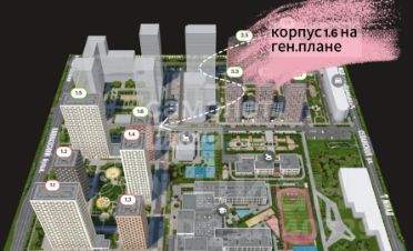 широкий пешеходный бульвар рядом с корпусами 1.5 и 1.6, разделённый на зоны отдыха и развлечений.