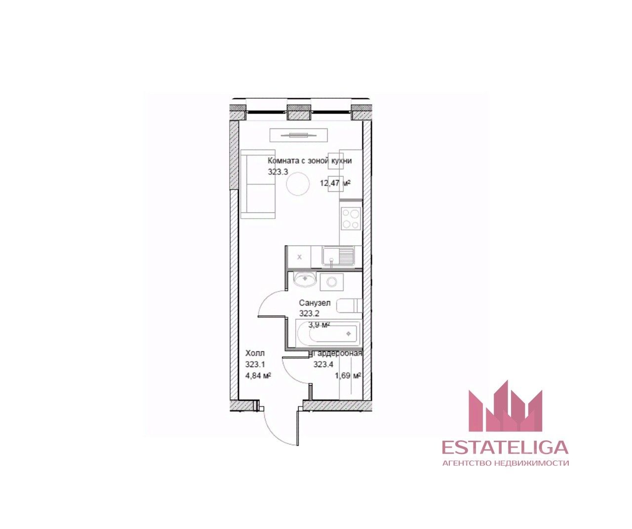 Тип: Студия с ПОЛНЫМ РЕМОНТОМ.