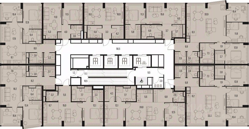 2-к квартира квартира в премиальном комплексе HIGH LIFE на 3-м этаже в 39 этажном здании. Общая площадь 35.4 кв. м.