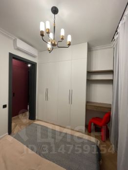 В спальне двуспальная кровать с ортопедическим матрасом, два прикроватных столика. В комнате большой вместительный шкаф с выдвижными ящиками, полками и трубами для одежды на вешалках. Есть косметический столик и полки. В спальне установлены ночные бра с точечным освещением. Ванная оснащена душевой кабиной с тропическим душем, раковиной, зеркалом с подсветкой, электрическим полотенцесушителем, унитазом и гигиеническим душем. В ванной установлены теплые полы. В постирочной установлены стиральная и сушильная машины. Смонтированы полки для хранения. В квартире 2 кондиционера. В гостиной и спальне. На полу паркетная доска, в зоне ванной, коридора и постирочной - керамогранит. На стенах в ванной и зоне кухни на - керамогранит. Остальные стены и потолок окрашены интерьерной экологичной красной Oikos Ultrasaten.