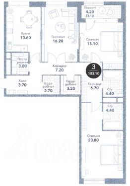 О квартире: 3 изолированные комнаты, кухня, гардеробные, 2 совмещенных санузла. Квартира без отделки.